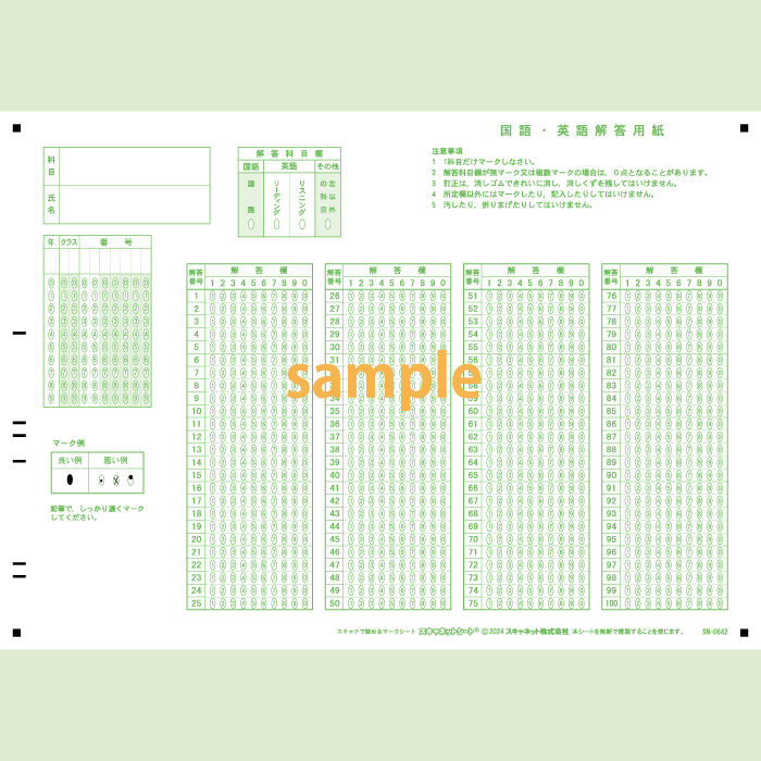 SN-0258 A4マークシート番号100問6択数字