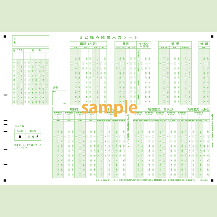 SN-0308 A4マークシート番号100問4択数字(マークタテ並び)
