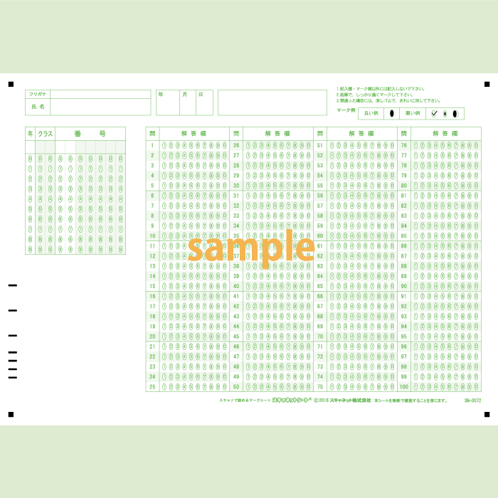 定期テスト、小テスト、国試対策、検定試験などの各種採点に便利なマークシートです。