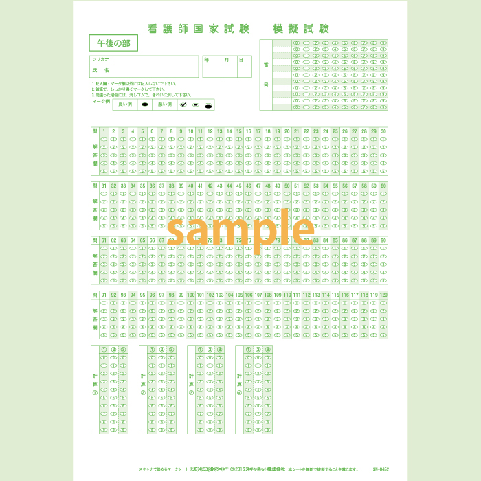 SN-0454 看護師国家試験シート 午後(マークヨコ並び)