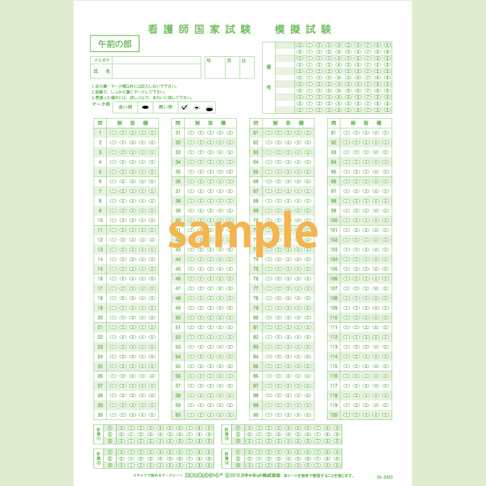 SN-0451 看護師国家試験シート 午前(マークタテ並び)
