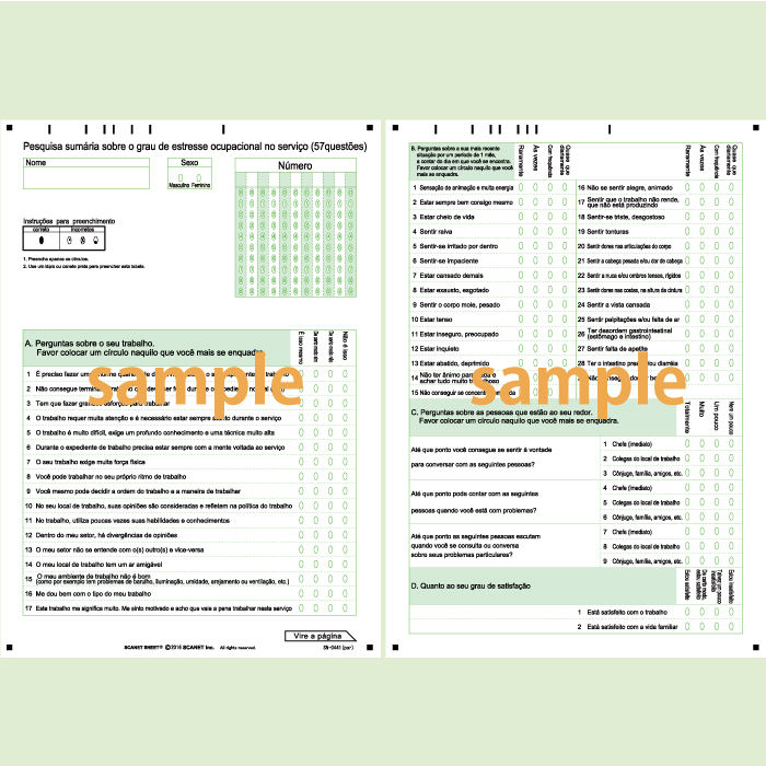 【100枚入り/英語版】SN-0441(eng) 職業性ストレス簡易調査票 標準版(57項目)