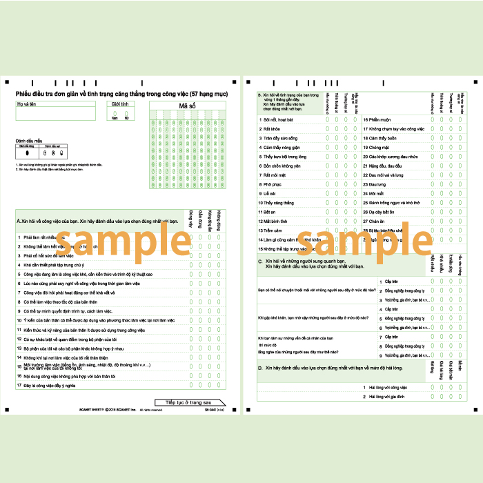 【100枚入り/英語版】SN-0441(eng) 職業性ストレス簡易調査票 標準版(57項目)