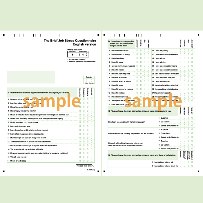 【100枚入り】SN-0459 職業性ストレス簡易調査票 標準版(57項目)バーコード差込印刷対応版