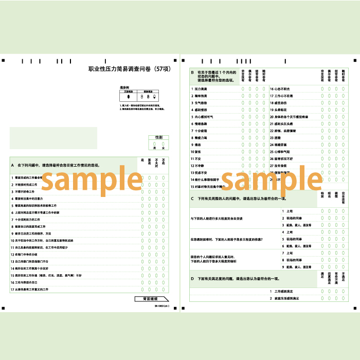 【100枚入り】SN-0459 職業性ストレス簡易調査票 標準版(57項目)バーコード差込印刷対応版