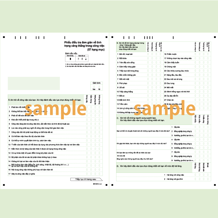 【100枚入り】SN-0459 職業性ストレス簡易調査票 標準版(57項目)バーコード差込印刷対応版