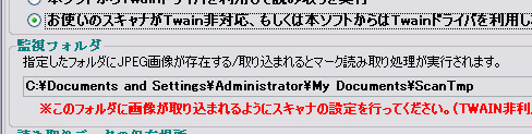 スキャナの「保存先」と詳細設定の「監視フォルダ」の場所が一致していないと、読み取る事ができません。