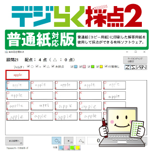 記述式テスト採点用のソフトウェアです。スキャナで読み取り、自動&簡単らくらく採点!